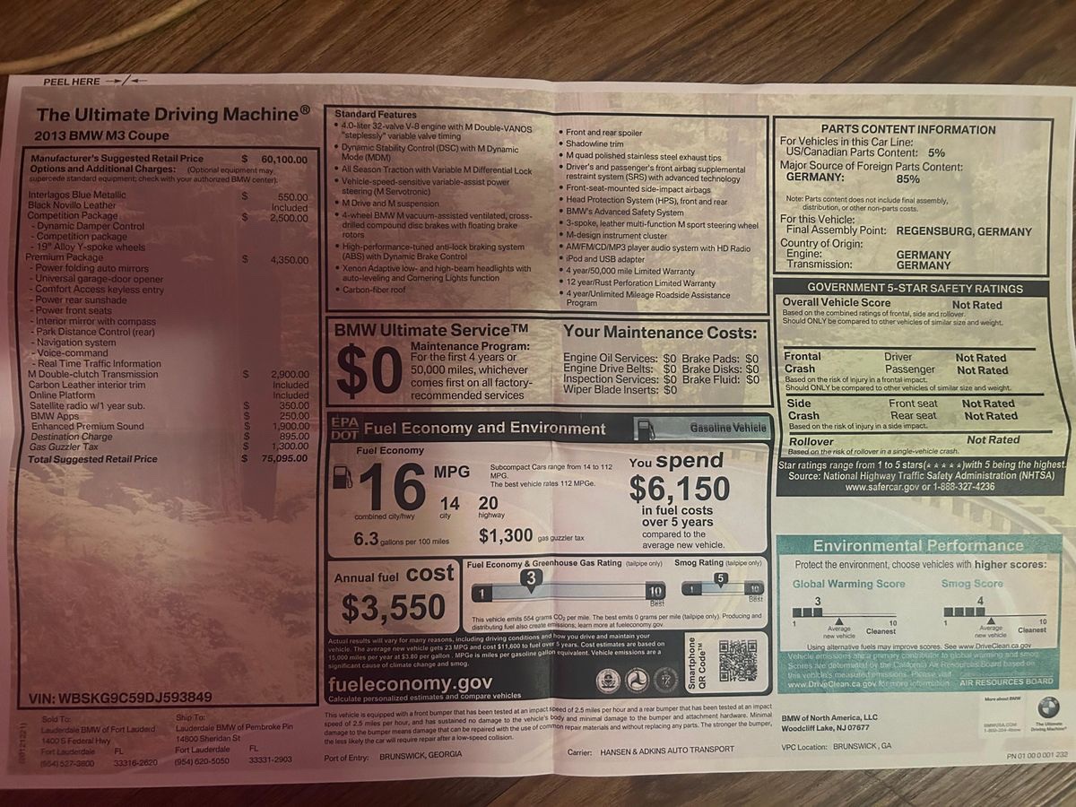 V8 Power, Interlagos Blue Metallic, Rod Bearings Replaced2013 BMW M3 Coupe Competition Package Watch V8 Power, Interlagos Blue Metallic, Rod Bearings Replaced